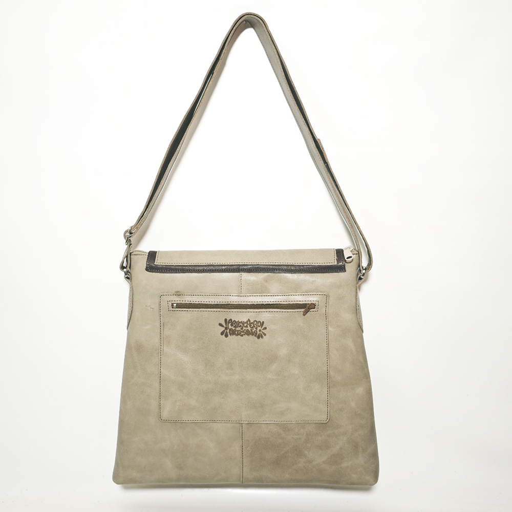 Bolso de piel de primera calidad, de fabricación artesana. Con cierre de cremallera y bandolera regulable.