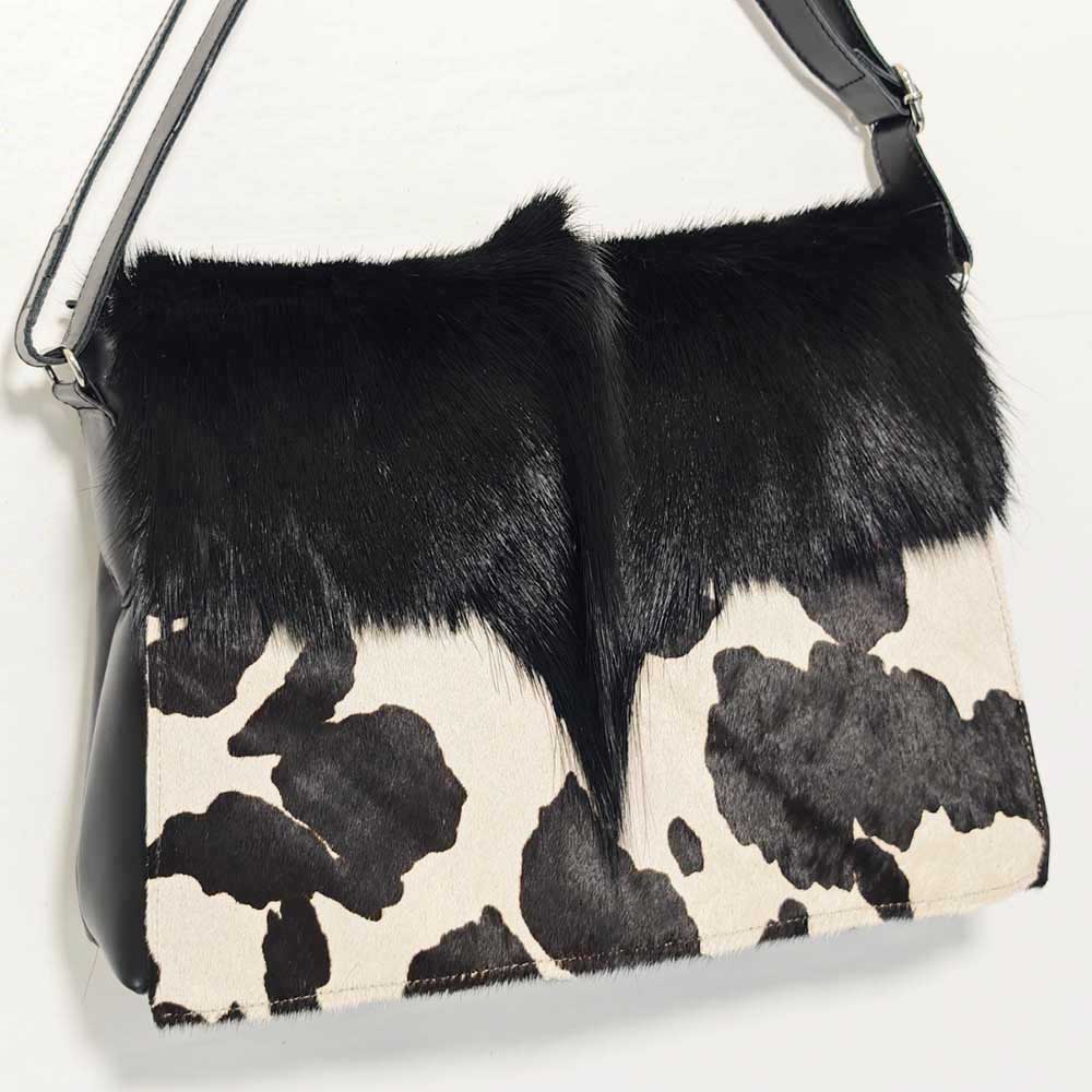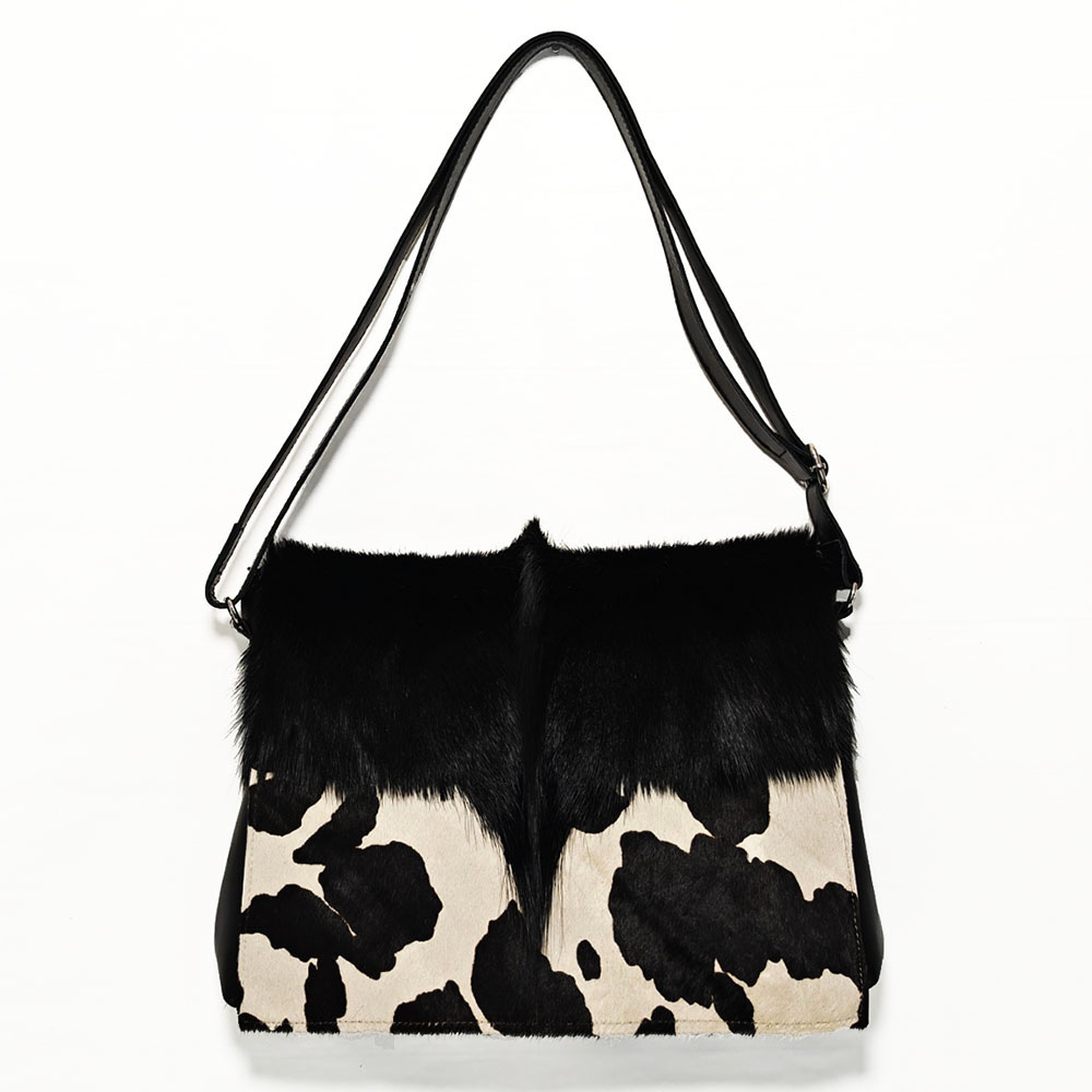 Bolso de piel de tamaño mediano. Se trata de un modelo confeccionado en piel combinado con pelo de gacela.