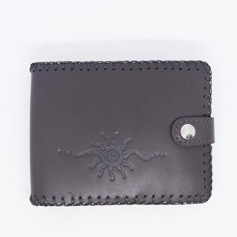 Con cierre exterior de presión, el modelo es más largo que alto y los billetes caben perfectamente, la cartera de cuero cabe cómodamente en el bolsillo. Está realizada en piel vacuno de gran calidad y terminada artesanalmente a mano. Tiene compartimentos para billetes, monedas, tarjetas, así como fotografías o carnets.