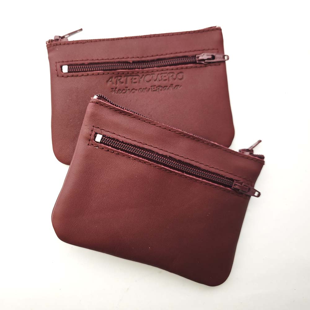 Monedero de piel, con cierre de cremallera y anilla para llaves