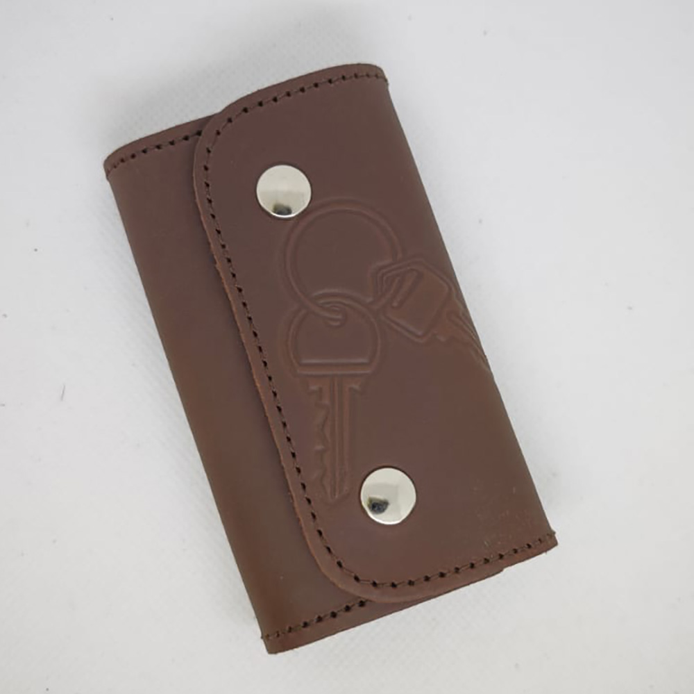 Tiene en el interior un bolsillo tamaño tarjeta y esta grabado con unas llaves a modo decorativo.