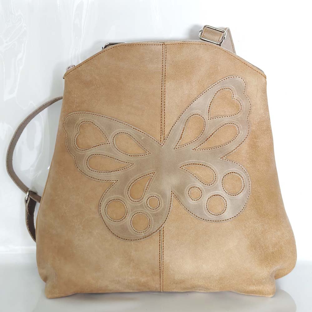 MOCHILA MARIPOSA DE PIEL CON BOLSILLO TRASERO CON CREMALLERA