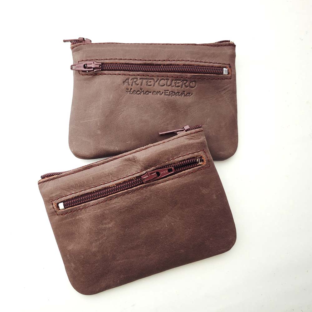 Monedero de piel, con cierre de cremallera y anilla para llaves