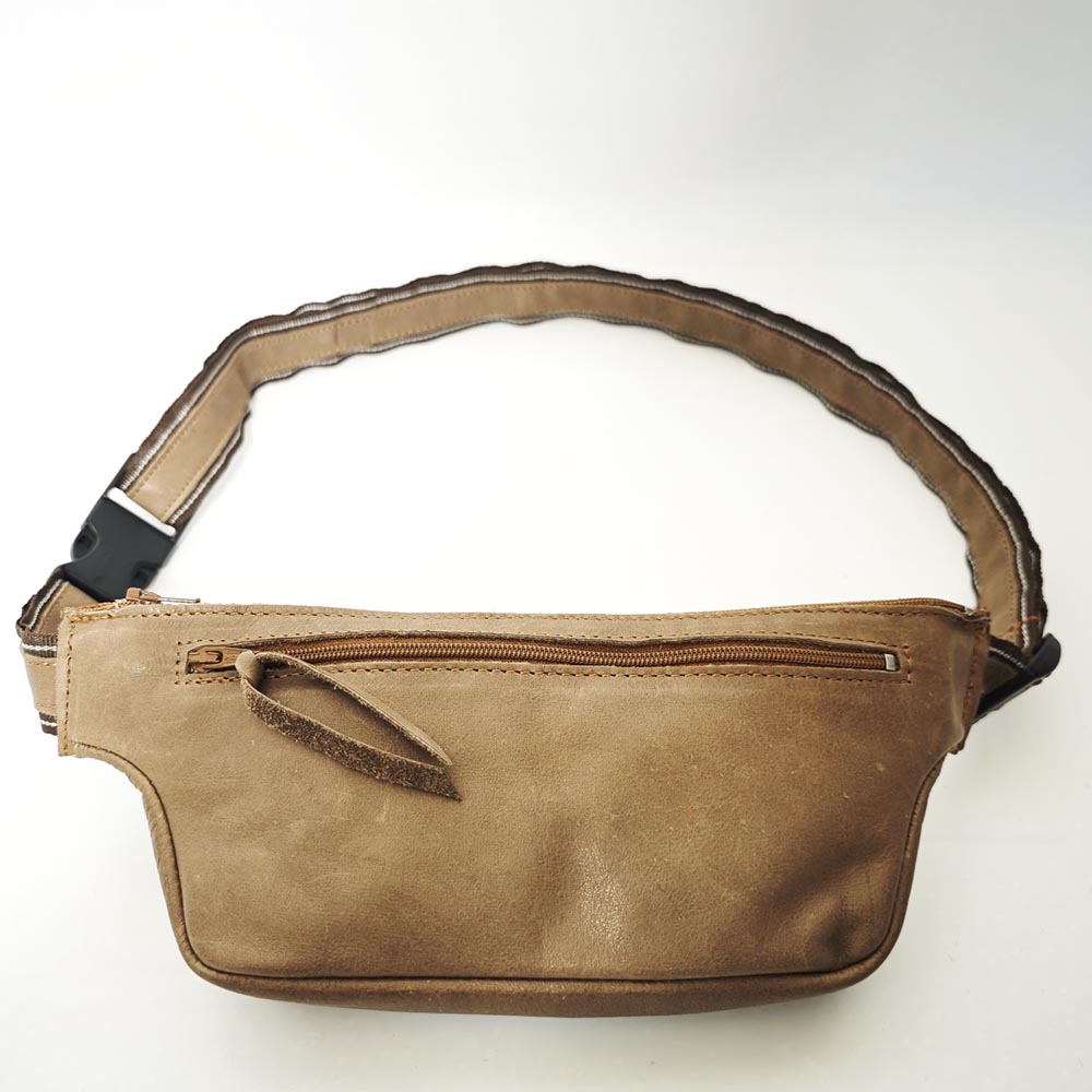 Tiene dos compartimentos para llevar la cartera, el teléfono, dinero en efectivo, las tarjetas de crédito más algunos otros elementos esenciales y se puede llevar en la cadera o en el hombro.