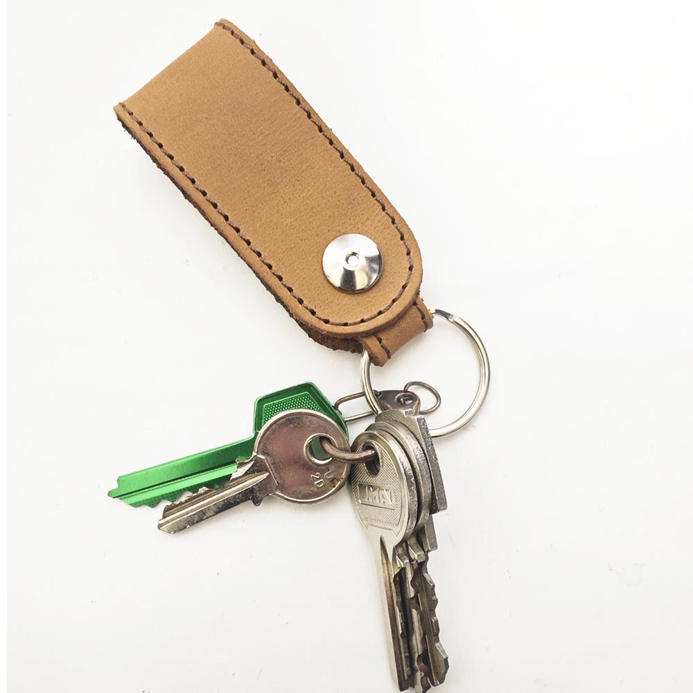 Llavero de tira de cuero con corchete que se puede poner en el cinturón.